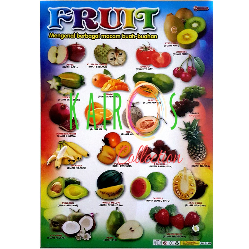 Poster Buah Buahan 3 Bahasa Indonesia Inggris Arab Yufid